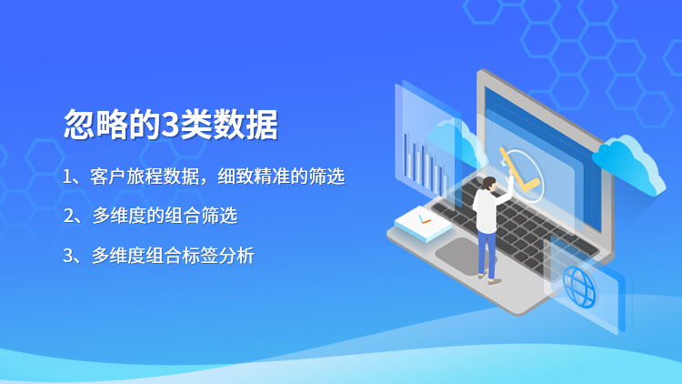 数据是一个公司重要的资产之一。利用好数据,做好分析,可以快速帮助管理者分析当前经营的问题,并发掘新的机会点。更能通过简单的几个维度数据,快速掌握销售的关键环节,从而更有效的管理销售,给出指导。 客户旅程数据,细致精准的筛选 学员旅程可以细致的记录学员与顾问的互动点。配合强大
