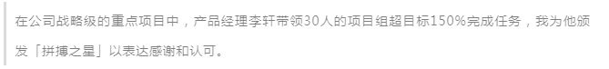 这种形式让线上的表扬增添了一份仪式感,集齐整套设计精美的勋章,虽然不能召唤神龙,但可以满足内心对于美好事物的收集欲,同时也能通过这种趣味轻松的形式给人鼓舞和激励,让团队氛围轻松自由。